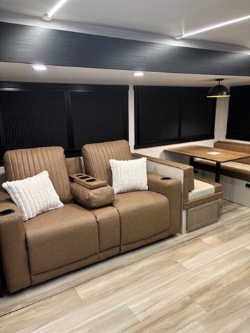 Take a look at this beautiful 2025 Wildwood Heritage Glen 25RBHL. This unit has a 1 piece fiberglass roof, square tinted windows, carpet free! Large rear bathroom with walk-in shower, double bowl sinks, beautiful high end finishes. The living area has theater seating, large flat screen TV with hidden storage and a fireplace. Booth dinette offers additional sleeping, microwave, stove/oven, refrigerator/freezer. The bedroom has mirrored closets on either side of the queen bed with versa tilt and overhead storage. Stop by Small Town RV and take a tour!