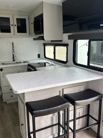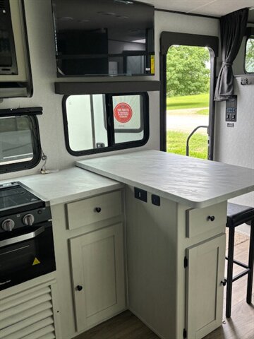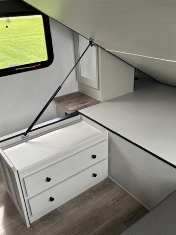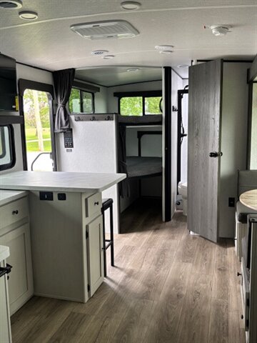 New Floorplan!!! This midsize bunk floorplan is perfect for the family. Coming in under 30 feet overall and just under 6000 lb., the 2457BH features a booth dinette, a breakfast bar with chairs, huge pantry, an abundance of counterspace, double over double bunks, and an outside kitchen. The bottom bunk lifts up to make use of our “Store More” cargo center, which is perfect for bikes, coolers, kayaks, totes, or any other storage items. Don't forget the fishing pole holder in the front storage compartment. Northern Spirit is a great camper for those just starting the camping scene or for the long time enthusiasts that are looking for a great camper at an affordable price. Stop by and take a tour!