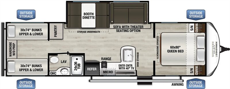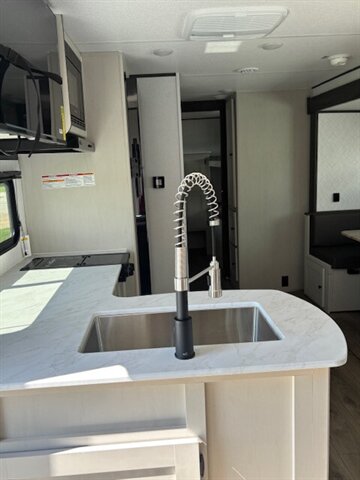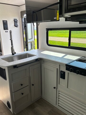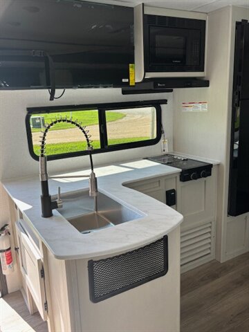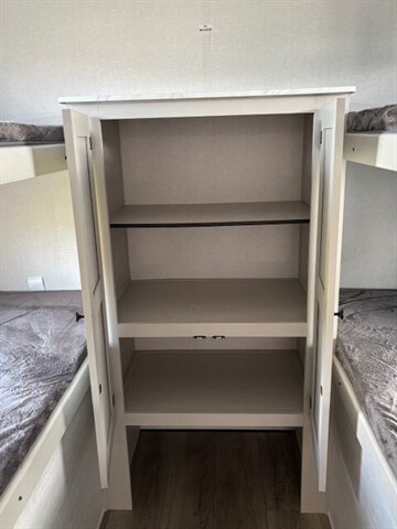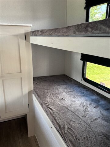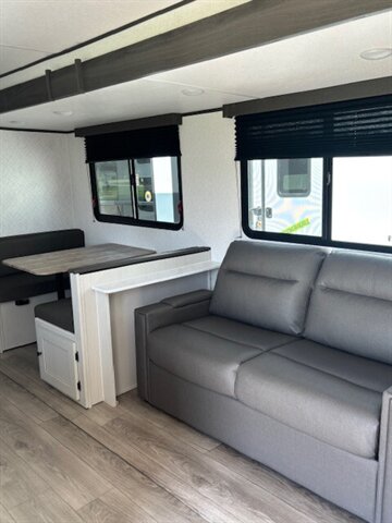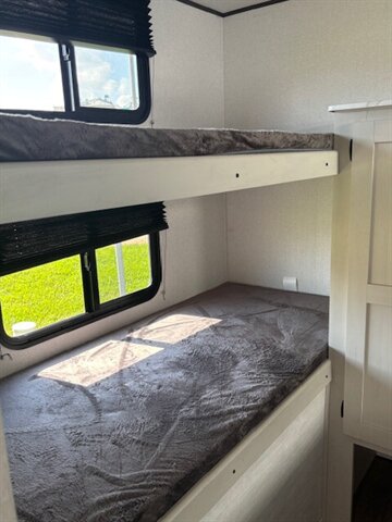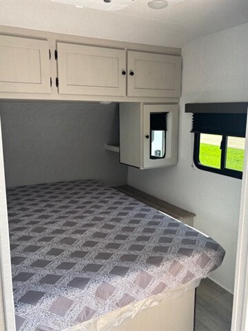 Get yourself a NEW 2026 for the price of most used RV's! This unit is a great unit for a family, it has 4 bunks, a dinetter for extra sleeping, fold out couch, queen bed, tons of counterspace, microwave, 2 burner stove, large refrigerator/freezer, nice sized pantry, private bathroom with shower/tub combo. Washer/Dryer Prep. 40" TV comes standard. This unit is a nice simple RV but still has all of the space and storage you need. Large pass thru storage area on the outside as well as a large storage area in the back. 50 AMP service with 2 AC's! Stop by STRV and check out this awesome NEW FLOOR PLAN for 2026!